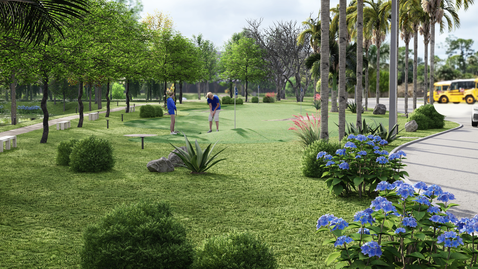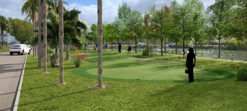 Beautiful natural grass putting greens with sand bunkers